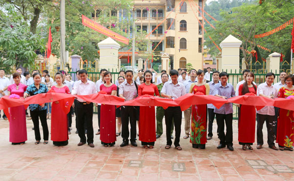 Các đại biểu cắt băng khánh thành Trung tâm hành chính công huyện Bắc Mê.